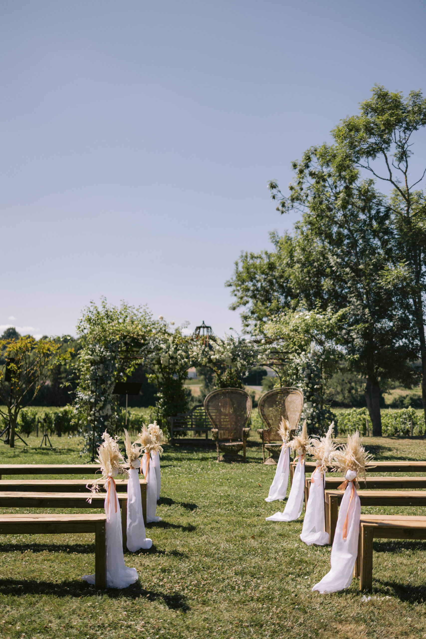 Le lieu pour la cérémonie sous la gloriette est absolument parfait. Nous l’avions fait décorer et elle a été sublimée ! La salle de réception est magnifique ! Nous étions 65 en tout et nous avions assez de place et il y a un espace pour danser également. Toutes les chambres et dortoirs sont superbes et très bien entretenus ! Nous étions dans un cocon. Nous avons eu la chance d’avoir la nouvelle piscine et elle est parfaite ! Nous y avons passé beaucoup de temps. Il y a un espace pour la pétanque et beaucoup d’endroit où faire et mettre plein d’autres activités. Tous les endroits sont absolument sublimes pour prendre des photos le jour J ! Ou pour faire un cocktail à l’extérieur. Si jamais il ne fait pas beau, ou trop chaud, le plan B est tout aussi joli ! Ce qui nous a rassuré. Le patio est magnifique ! En bref, rien à dire sur le château et la beauté de ce lieu ! Nous avons même fait faire un feu d’artifice dans les vignes et cela a rendu le moment magique ! Des larmes versées quand nous sommes partis et que nous avons vu le château dans le rétroviseur … Merci pour tout! »