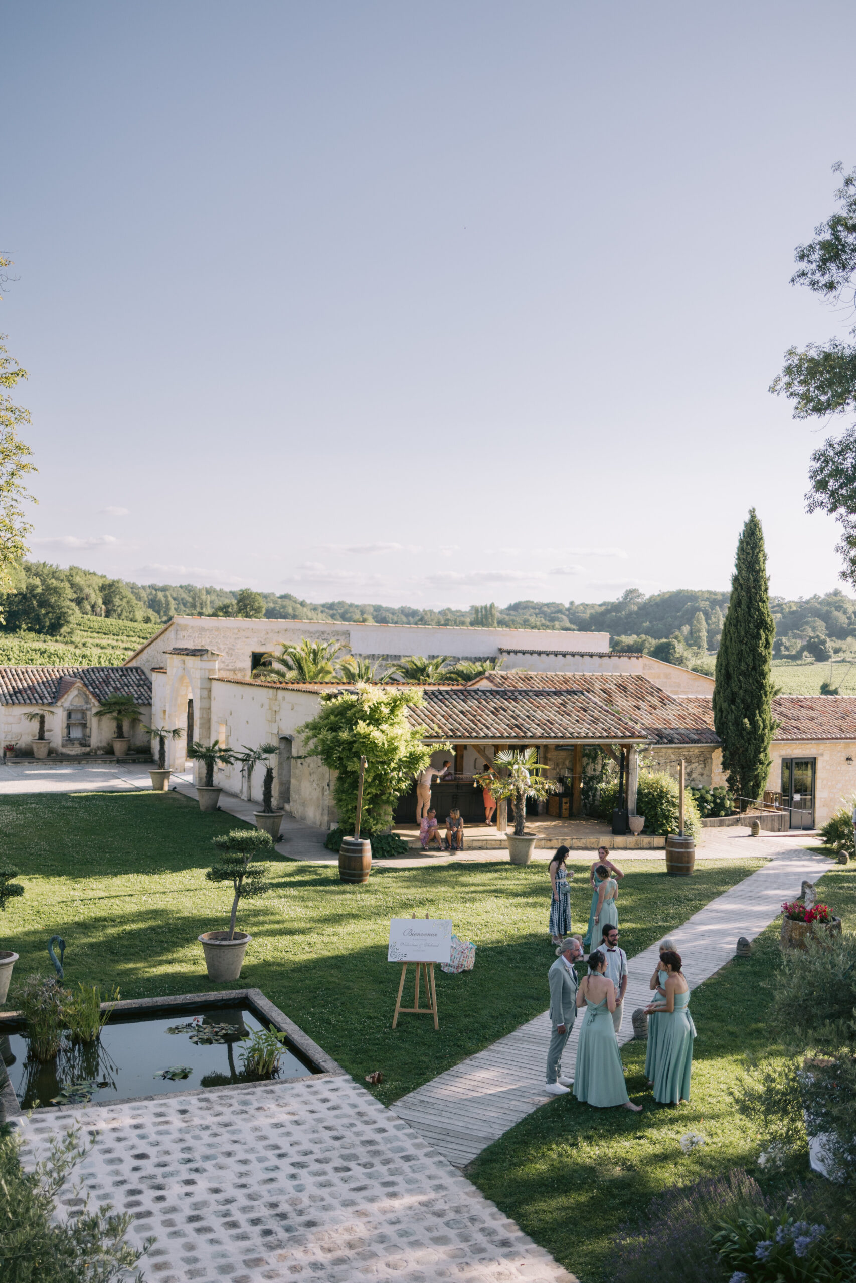 « Nous avons décidé de célébrer notre mariage au Château de Garde, en Gironde, et nous n’avons pas été déçus. Le lieu est magnifique et nous a permis de passer un week-end inoubliable, pendant lequel une grande partie de nos invités ont pu rester sur place tout le week-end. Le château et ses dépendances sont magnifiquement décorés et les jardins, la cour intérieure ainsi que les salles prévues pour les festivités rendent ce lieu unique. Même en cas de pluie, le lieu offre suffisamment d’alternatives pour une fête au sec. Enfin, l’équipe était extrêmement sympathique et très accommodante, afin de nous permettre la meilleure organisation possible. Nous n’oublierons jamais la fête au bord de la piscine.